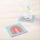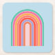 Retro Rainbow Colourful Blue Square Paper Coaster