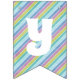 Created to coordinate with the "Retro Rainbow" birthday invitation suite, this bunting banner features a colourful rainbow and cloud design with a handful of daisies scattered around. The "Happy Birthday" message is written in a retro-inspired font, and placed over a diagonal pattern background. The rainbow panels include space for a photo, or the photo(s) can be removed. While this bunting banner was created for a child's birthday party, I think it would be perfect for a baby shower as well.