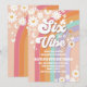 Celebrate your childs special day with this vibrant retro rainbow birthday invitation featuring playful daisies, peace signs, hearts, butterflies, and a cheerful smiley face. The groovy pastel stripes in orange, pink, purple, and teal create a fun hippie vibe perfect for kids parties. Fully customizable with party details, this colorful design is ideal for a 6th birthday or any retro-themed celebration. Make your event unforgettable with a unique invitation that radiates peace, love, and joy.