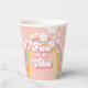 Five is a Vibe! Retro inspired 5th birthday paper cups with 70's style fonts and colours, rainbow, and daisies in pink