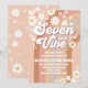 Celebrate in style with this retro groovy birthday invitation featuring pastel rainbow stripes, daisies, hearts, stars, butterflies, and a cheerful smiley face. Perfect for kids parties, this hippie-inspired design blends nostalgic flower-power vibes with modern charm. Customize with your childs name, age, and party details to create a unique keepsake guests will love. Ideal for 7th birthdays, but easily adaptable for any age, this playful invitation adds peace, love, and fun to your celebration.