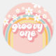 Retro Rainbow Groovy One 1st Birthday Classic Round Sticker