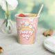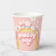 Groovy One! Retro inspired 1st birthday paper cups with 70's style fonts and colours, rainbow, and daisies in pink