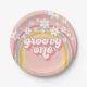 Retro Rainbow Groovy One 1st Birthday Paper Plate