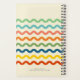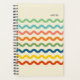 This highly customisable planner notebook features a retro trendy take on stripes with a ric rac wave in weathered tones of red, green, orange, blue, and yellow on an aged white or charcoal grey background. A line of editable text makes for easy customisation with a name, event or subject on the front cover and smaller return information text on the back in case the notebook is lost.