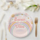 Retro Rainbow Seven is a Vibe 7th Birthday Paper Plate