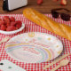 Seven is a Vibe! Retro inspired 7th birthday plates with 70's style fonts and colours.