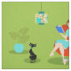 This Retro Reading Woman Fabric features a 1960's style, minimalist art, cartoon drawing of a woman who has her priorities in order. This delightful bookworm is entranced in a real page-turner. The shapely brunette is wearing an aqua dress and red glasses, while holding a blue book. She is seated in a comfy, red egg chair. In front of her, a sleek, black cat in a teal collar is enjoying the peace and quiet that comes from living with a bibliophile. Both woman and cat are in a stylish green room. Overhead, there is a kitschy pendant lamp in shades of yellow and turquoise. To the side, there is a lush, tropical, potted plant in an aqua flowerpot. Kitty, if you need something, you'll have to wait until she finishes this chapter!