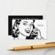 Retro woman holding a phone to her ear "Call Me" to the right/ Back is black with white customisable text
