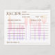 A card with brown lines, stripes placed on white surface with personalised background retro recipe on front postcard. It is customised with your initial and name.