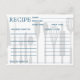 A card with brown lines, stripes placed on white surface with personalised background retro recipe on front postcard. It is customised with your initial and name.