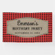 Personalised retro black and red buffalo plaid pattern with beige birthday party.