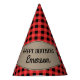 Retro Red and Black Buffalo Plaid Pattern Birthday Party Hat