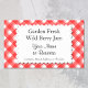 Retro country red and white plaid pattern of checks and stripes on customisable stickers in retro block and scrips letters, on a faux doily. Customise it to change fonts or sizing, add fields or change background colours or label shape, even save your design for later.