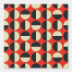 This dot pattern is a vintage sixties pattern. The colours are bold and the split coloured dots give a geometric feel. The background is orange red. The dots are tiled.