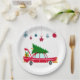 Retro Red Car Carrying a Christmas Tree Paper Plate
