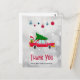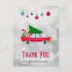 Retro Red Car Carrying a Christmas Tree Thank You Postcard