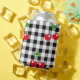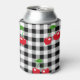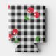 Retro Red Cherry Black White Buffalo Plaid Gingham Can Cooler