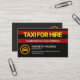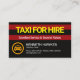 A minimalist black cover accentuated by two red columns at the top of the card. Here lies two slogan options that you can change to suit your service type. Near the base is a yellow taxi logo that you can use. Beside it are your prestigious name, job title and contact details.