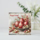 Retro red Easter eggs watercolor spring flowers Holiday Card
