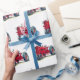 Retro Red Farm Tractor On White Wrapping Paper