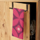 Retro Red Flowers on Mid Century Circles Pattern Tea Towel