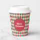 Festive and rustic looking vintage harlequin diamond pattern in holiday red and green on distressed / aged background. Customisable text circle in centre