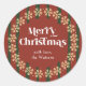 Retro Red & Green Merry Christmas Custom Name Classic Round Sticker