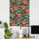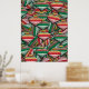 Retro Red Green Striped Ornament Pattern Design Poster