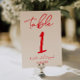 Retro Red Hand Written Wedding Table Number