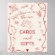 This Retro Red Love in the Air Cards and Gifts Sign is a playful, Valentine-inspired accent for your celebration. The design features hand-drawn bows, hearts, a sweet cupid illustration, and retro red doodles that set a warm, lively mood at the cards and gifts table. The artwork keeps things charming without feeling busy, giving guests an easy visual cue on where to place their items.