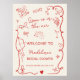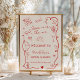 A playful red-line illustration sign that sets a fun tone for any celebration. The layout features charming doodles, soft curves, and a lighthearted message that suits a romantic gathering. Perfect for placing at an entry, gift table, or photo corner. Guests instantly understand the theme and mood as they walk in, and hosts can easily match it with other décor in a similar palette.
