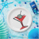 Single martini. Totally retro. Outline in black with the colour stamp slightly off centre. Green olive in martini
