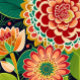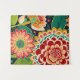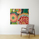 Bright and cheerful retro floral, hippie vibe tapestry. Beautiful and detailed flowers in shades of red, orange, and yellow.