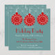 A trio of ornaments in pink, purple and lime decorate this holiday party invitation in retro style! Use our matching sticker to decorate your envelope for a great coordinated look!