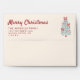 a vintage retro minimalist simple blue and red and pink Merry Christmas trees holiday envelope. As you see it features a plain creamy colour background with green handwritten script typography of Return address info. And you got red and pink merry Christmas calligraphy . Along with the your customisable return address. And hand drawn blue Christmas trees made of pink and red ribbon bows.