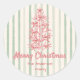 Retro Red Pink Hand Drawn Bows Tree Christmas Classic Round Sticker