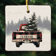 Retro Red Plaid Christmas Truck Custom Family Name Ceramic Ornament