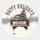 Retro Red Plaid Christmas Truck Custom Family Name Classic Round Sticker