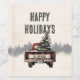 Retro Red Plaid Christmas Truck Custom Family Name Wine Label