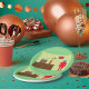 A retro red robot in a living room. This design looks really effective on these Paper Plates