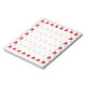 A retro pattern of red strawberries and white strawberry flowers on a small pad of notepaper.