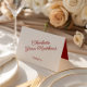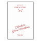 Featuring a playful red and white colour scheme, this place card showcases delicate design elements that evoke a nostalgic, retro feel. Its timeless aesthetic blends sophistication with whimsy, offering a refined way to welcome your guests. Perfect for any wedding theme, this place card not only helps organise your seating arrangements but also adds a personal and stylish flair to your celebration. Pair it with other coordinating items from the collection for a complete and cohesive wedding look.