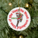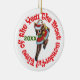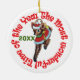 This cute Christmas ornament has an image of a reindeer dressed in a Santa hat and coat. He is framed by the circle text The Most Wonderful Time of the Year. The reindeer and red text are placed on a white background. You may place the appropriate year in green next to the reindeer image. Both sides of the ornament have the same image.