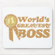 Is your boss the greatest? This vintage style mousepad reads, "World's Greatest Boss" with a Number One ribbon in a retro-style font. Design is distressed for a vintage look.
