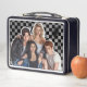 This is a standard metal lunchbox that appears to work just fine. We designed this box ourselves with an uploaded photo and custom text on the front and back. It looks absolutely beautiful except the front of the lunchbox is not centered like it shows in the photo. The print borders don't align with the inset flat part of the box where the preview photo online showed it perfectly centered in there. The back looks nice and centered though.