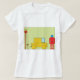 Cruising alongside the robot is a bright and cheerful yellow car. This iconic automobile captures the essence of the open road and adventure. The bold yellow colour evokes the feeling of sunshine and happiness, making this tee a perfect choice for those who love a touch of retro optimism.