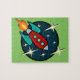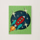 Retro Rocket ship graphic illustration jigsaw puzzle. Background colour can be customised.