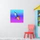 An awesome retro rocket against a multicolored background.
