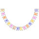 A fun and brightly coloured happy birthday bunting flag in pink, yellow, orange and purple featuring cute roller skates! See the whole matching party collection!